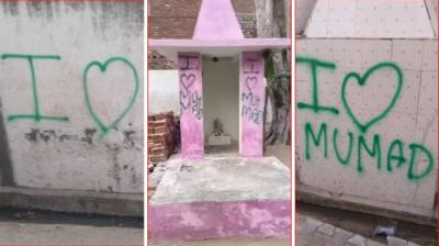 अलीगढ़ के हिंदू मंदिरों में लिखा I Love Muhammad, करणी सेना ने दी चेतावनी