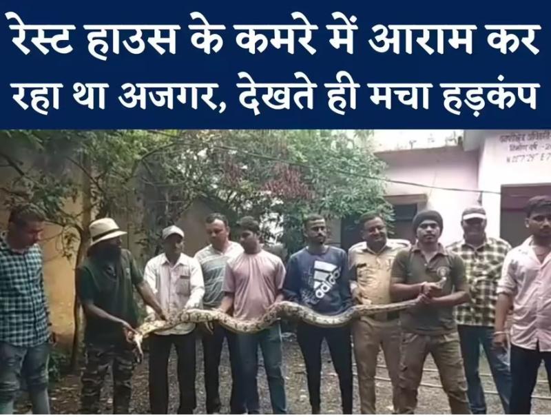रेस्ट हाउस में हड़कंप: शिकार की खोज में निकला विशाल अजगर पकड़ा गया, रेस्क्यू के बाद दिखा डरावना आकार
