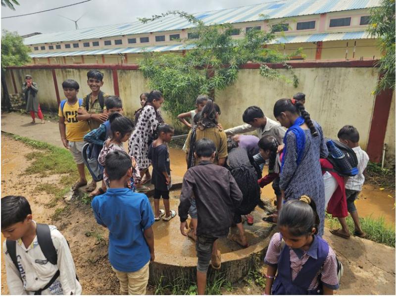 सड़क से लेकर कक्षा तक फैला पानी, अभिभावक बोले- बच्चों की सुरक्षा सबसे पहले