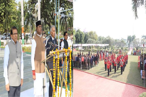 भोपाल : दिसम्बर माह के प्रथम शासकीय कार्य दिवस पर सोमवार को मंत्रालय स्थित सरदार वल्लभ भाई पटेल पार्क में राष्ट्र-गीत "वंदे-मातरम" एवं राष्ट्र-गान "जन-गण-मन" का सामूहिक गायन हुआ। इस अवसर पर पुलिस बैंड ने मधुर धुनें प्रस्तुत की। वंदेमातरम गायन में खेल एवं युवा कल्याण, सहकारिता मंत्री विश्वास कैलाश सारंग, मुख्य सचिव अनुराग जैन, अपर मुख्य सचिव के.सी.गुप्ता, संजय कुमार शुक्ला सहित मंत्रालय वल्लभ भवन, सतपुड़ा-विंध्याचल भवन के अधिकारी-कर्मचारी एवं पुलिस कर्मी उपस्थित थे ।
