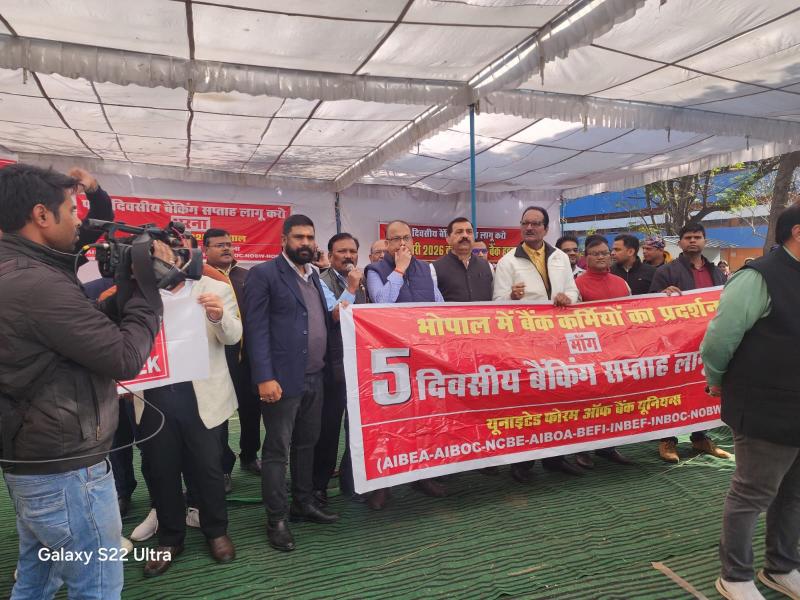 भोपाल की सड़कों पर उतरे बैंक कर्मचारी, सरकार से की पाँच दिवसीय सप्ताह की अपील