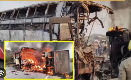 बस-ट्रक टकराने से आग, 13 लोग जिंदा जले; कई घायल