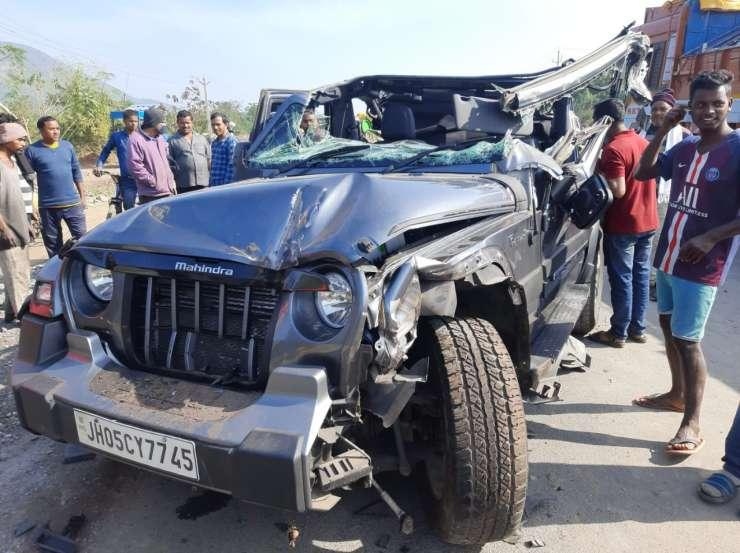 थार और कार की आमने-सामने जोरदार भिड़ंत