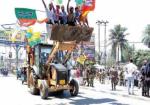 चुनावी मैदान में अनोखा अंदाज, बुलडोजर लेकर पहुंचे प्रत्याशी