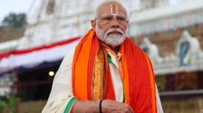 मोदी हाथ में चांदी का छत्र लेकर मंदिर पहुंचे