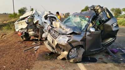 खाई में गिरते ही कार में आग, बचने का नहीं मिला मौका