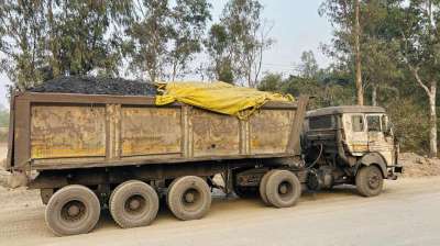 टायर फटने के बाद ट्रक में लगी आग, समय रहते बुझाई गई